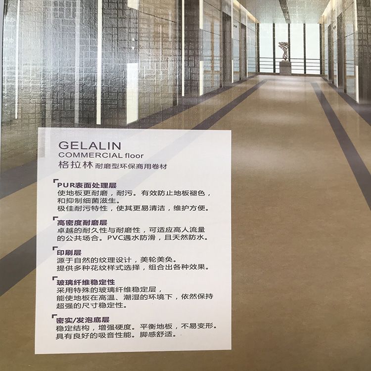 品牌:利嘉 材质:PVC 用途:医院、办公室、学校、图书馆 长度:20 m 厚度:2.0 mm 每件重量:80 kg 最大幅宽:2 m 型号:HB 办公室铺胶地板的好处